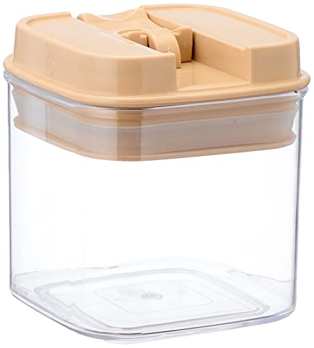 Black Bear - علبة تخزين أكريليك مربعه شفافه صغيره بغطاء كبس (0.6 لتر) - بيج