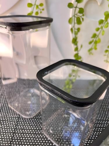 Generic - مجموعة تخزين الأكريليك - حاويات شفافة مع أختام سيليكون ، مثالية لحفظ البقوليات والوجبات الخفيفة والتوابل والمعكرونة والدقيق والسوائل ، مما يضمن نضارة محكمة الإغلاق وحماية ضد الانسكاب. (أسود, قطعتين)