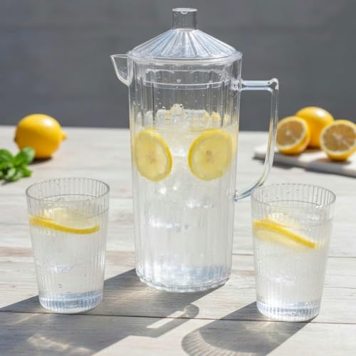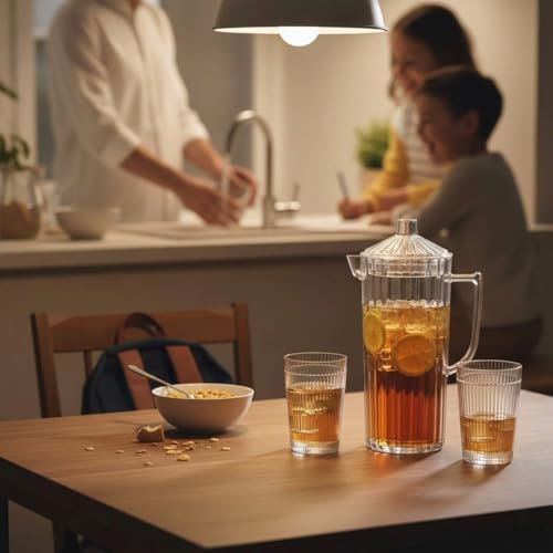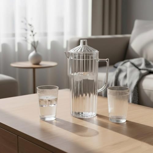 - ✅【سهولة الحمل والنقل】يتميز الطقم بوزن مناسب يجعل من السهل نقله من المطبخ إلى الطاولة أو لأي مكان آخر، مع تصميم مريح يقلل من الانسكاب أثناء النقل، ما يسهل تقديم المياه والعصائر بطريقة سلسة ومنظمة، ويجعل تجربة الاستخدام أكثر راحة ومرونة دون أي عناء إضافي على المستخدم. 🚰