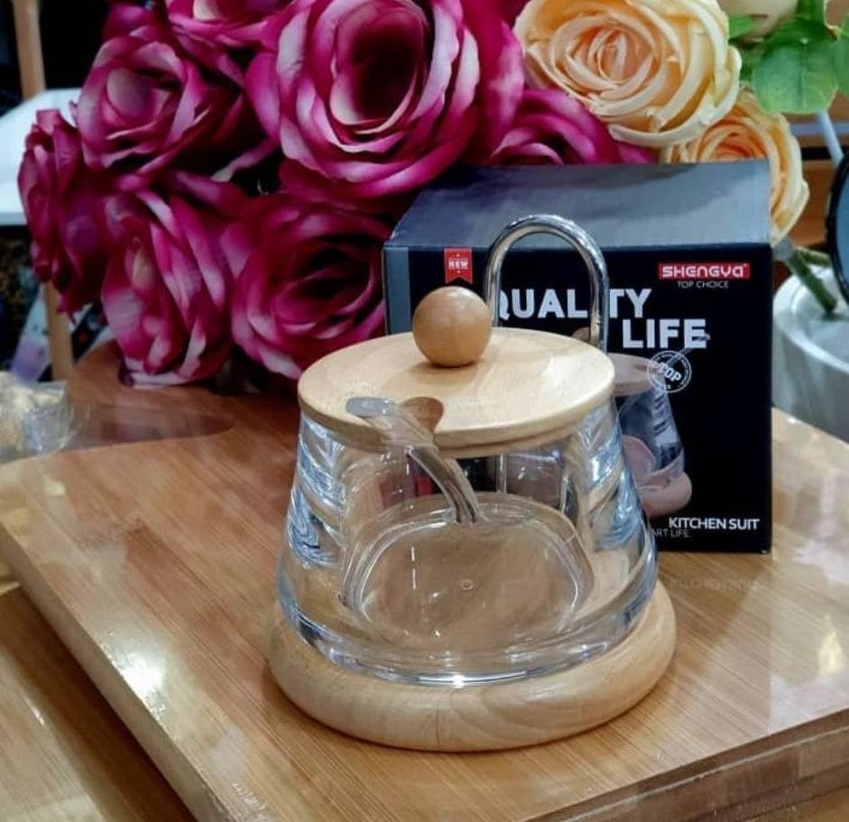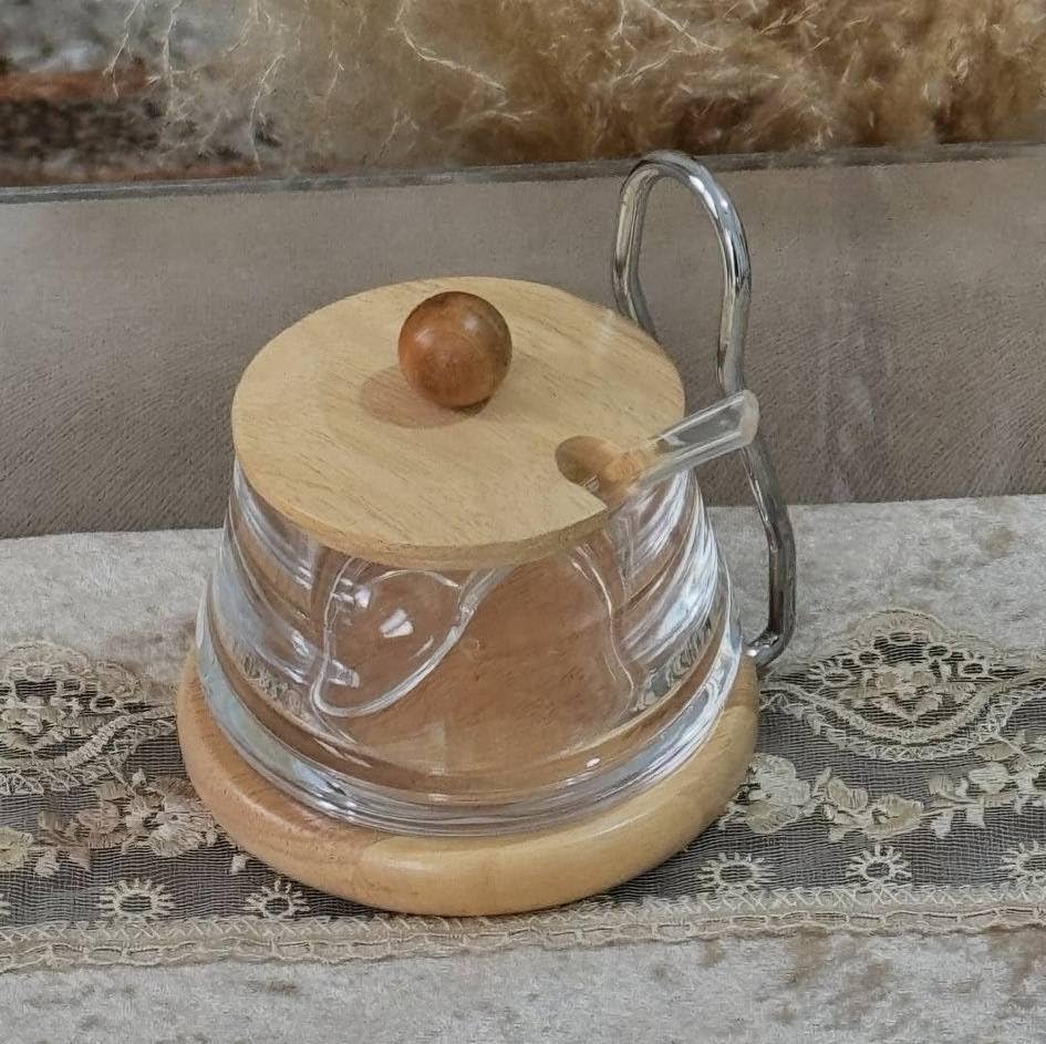- غطاء من الخشب: يضيف لمسة من الأناقة الطبيعية إلى التصميم. يحافظ على السكر طازجًا وخاليًا من الرطوبة أو الملوثات.