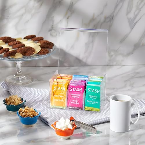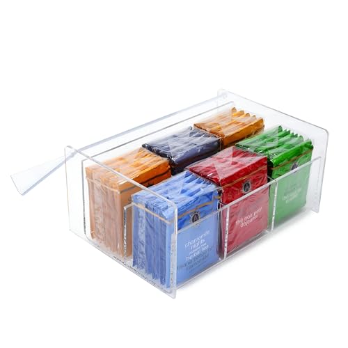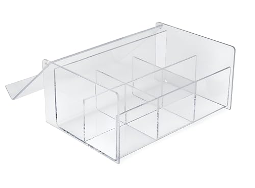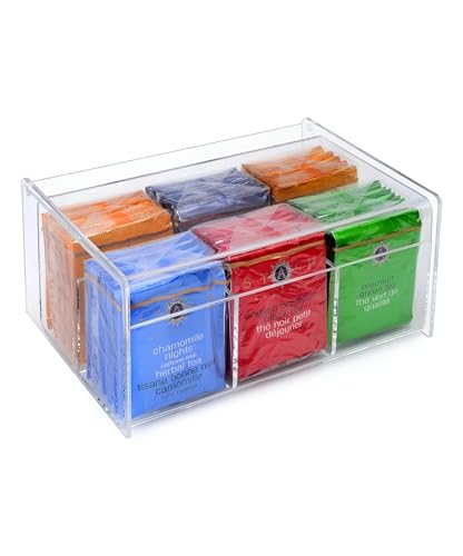 - يتميز منظم أكياس الشاي الاكريليك هذا بتصميم أنيق وعصري، مصنوع من الاكريليك الشفاف للغاية الذي يسمح لك برؤية أكياس الشاي المفضلة لديك في لمحة. يبلغ طولها 21 سم، وتوفر مساحة تخزين واسعة مع ستة أقسام، مما يجعلها إضافة أنيقة لأي مطبخ أو ديكور مكتب.
