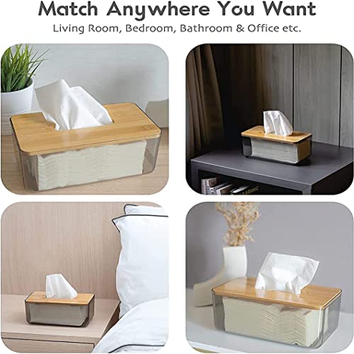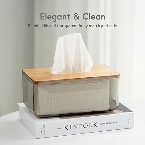 Generic - غطاء علبة مناديل اكريليك، موزع مستطيل شفاف بغطاء من خشب البامبو، حامل عصري للمناديل أو أوراق المجفف أو المناديل المبللة، منظم للحمام وغرفة المعيشة، رمادي شفاف