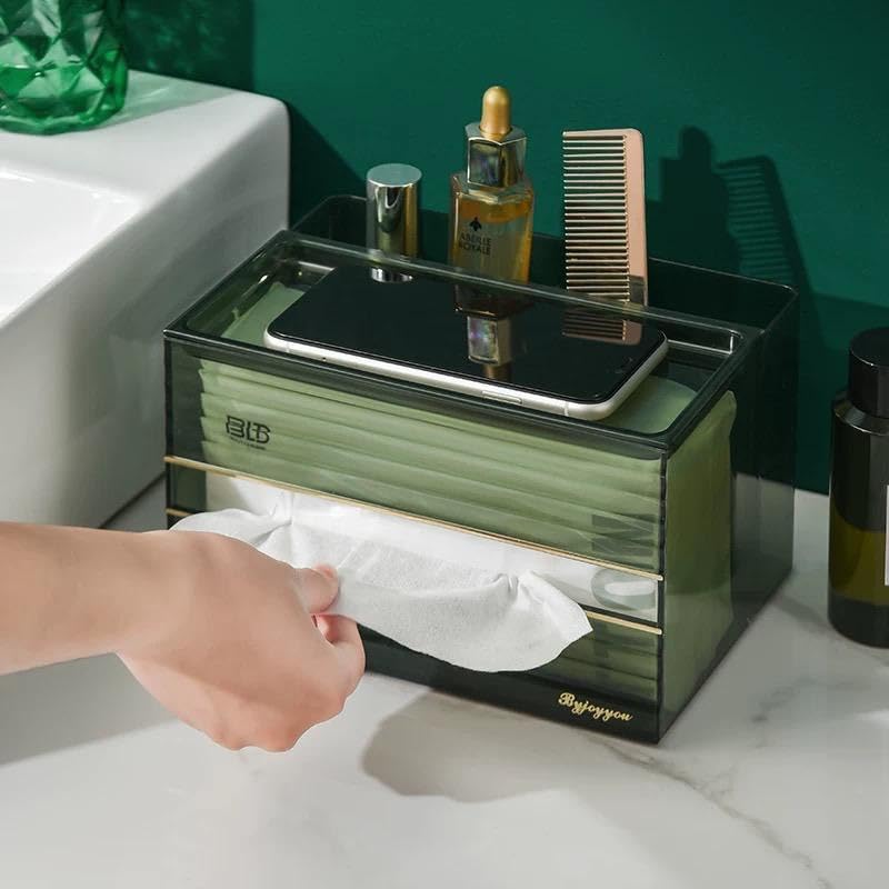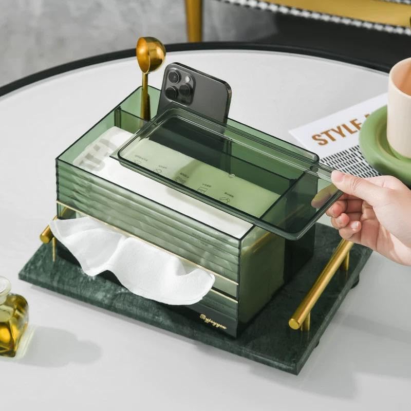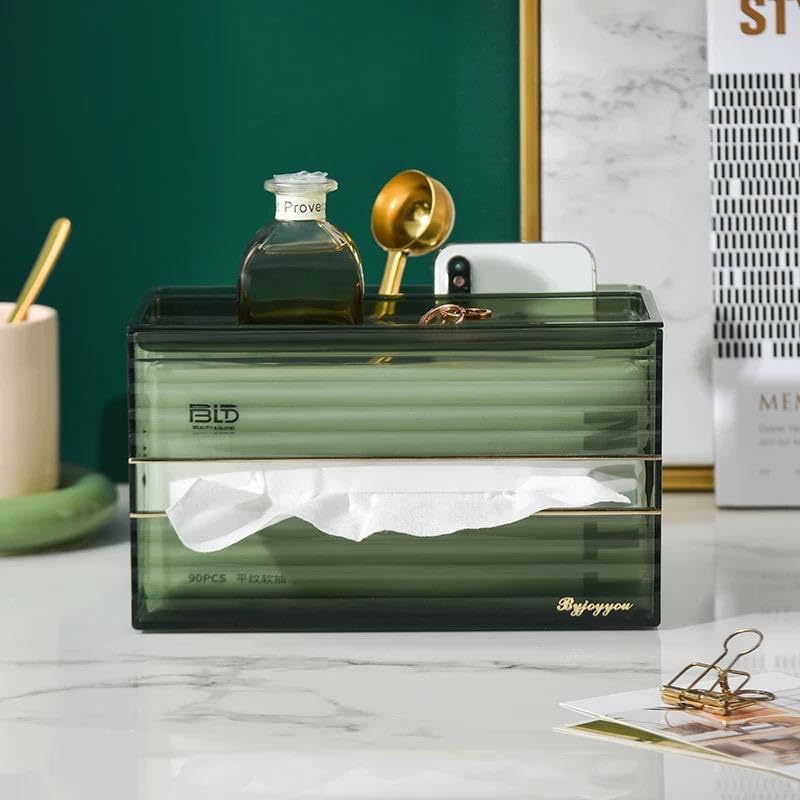 Generic - علبة مناديل اكريليك فاخرة شفافة بسعة كبيرة وتصميم بسيط مع قاعدة غير قابلة للانزلاق