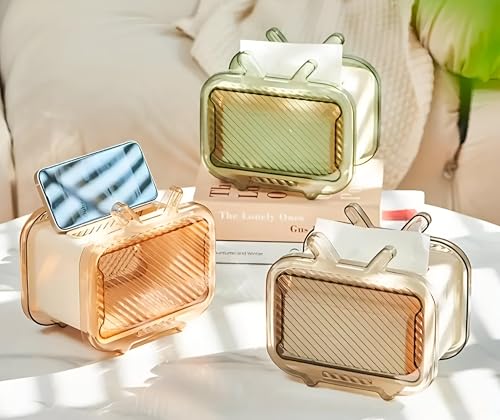 Generic - علبة مناديل اكريليك بتصميم راديو مع حامل موبايل للاستخدام المنزلي، حل انيق وعملي لمساحة المعيشة الخاصة بك (متعدد الالوان)