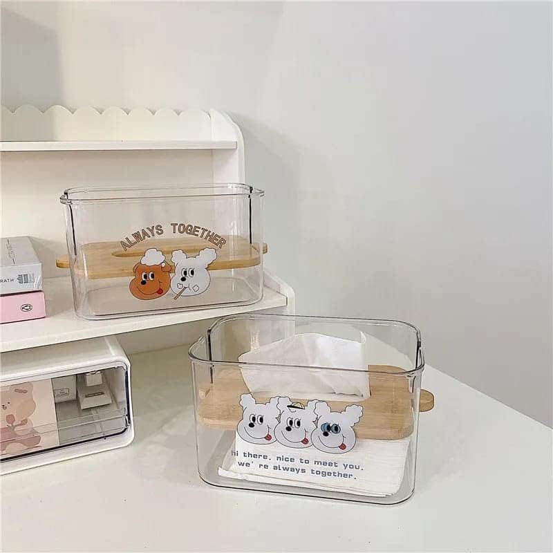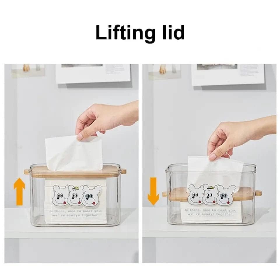 Generic - صندوق مناديل اكريليك بغطاء خشبي قابل للازالة بسعة عالية لديكور المنزل وغرفة المعيشة والمكتب وغرفة الدراسة بتصميمات لطيفة وجودة مذهلة (شكل 2)