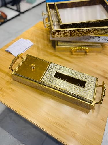 Generic - حامل مناديل اكريليك - صندوق شفاف بتفاصيل ذهبية مع غطاء علوي فاخر، يكمله مجموعة وجبات خفيفة ذهبية أنيقة، يعزز ديكور غرفة المعيشة وعرض الطاولة