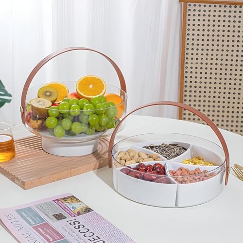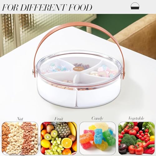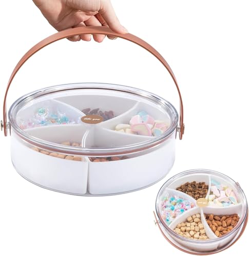 Generic - علبة تسالي متعددة الأقسام بغطاء شفاف ويد حمل متينة وأنيقة لتنظيم المكسرات والحلويات على السفرة والأماكن المختلفة Acrylic Tray