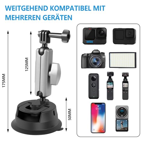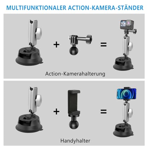 - 【حامل أكواب شفط 2 في 1】: حامل الهاتف الذكي، مناسب للهواتف الذكية بعرض 57 ملم إلى 100 ملم. حامل كاميرا اكشن متوافق مع جوبرو هيرو 12/11/10/9/8/7/6/5/4/3+، انستا 360 ون اكس 2/اكس/ون ار/جو 2، دي جيه اي اوسمو، كروستور، سارجو وغيرها من كاميرات الحركة.