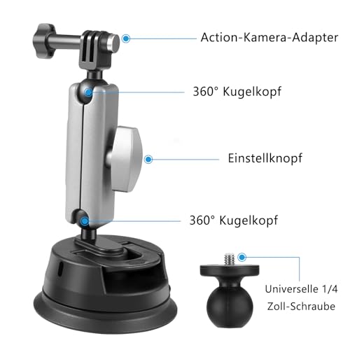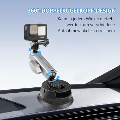 ZAKVOP - قاعدة تثبيت بالشفط لكاميرا الاكشن من زاكفوب مع كرة راس مزدوجة 360 درجة وبرغي 1/4 انش، قاعدة تثبيت بالشفط متوافقة مع جوبرو هيرو 10/9/8، انستا 360 ون اكس 2