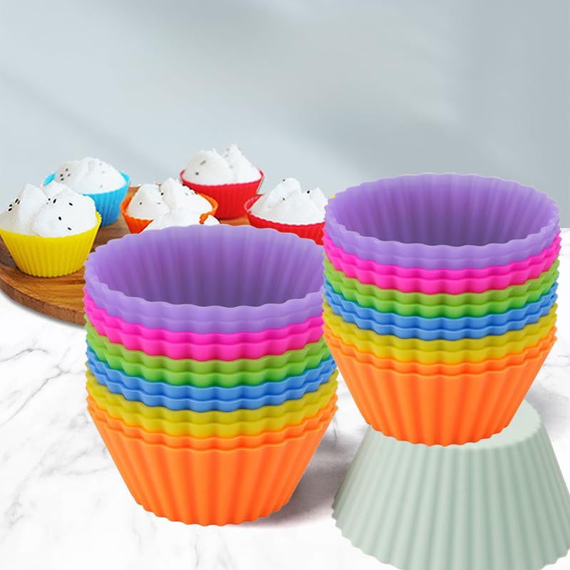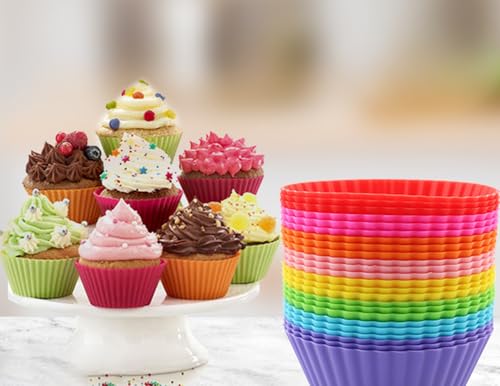 ACTIUSIS - قالب مافن سيليكون من اكتيوسيس، قالب خبز، قوالب مافن قابلة لاعادة الاستخدام، تستخدم في الكعك والبودينج والكريم، 6 الوان، عبوة من 24 قطعة