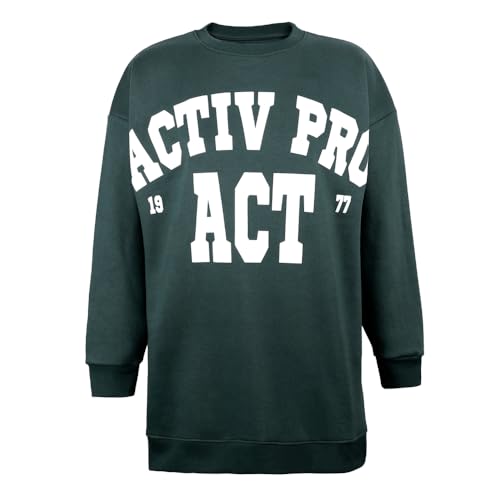 activ - سويت شيرت مطبوع برقبة دائرية للنساء من اكتيف، لون زيتي، مقاس L