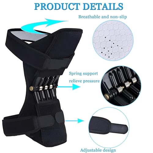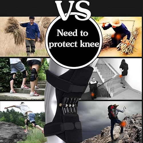 Generic - معزز الركبة النشط - آلية زنبركية محسنة تعزز الحركة وتقلل الضغط أثناء التسلق والركض والتمارين الخارجية الممتدة مع متانة فائقة باللون الأسود. (قطعة 2)