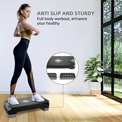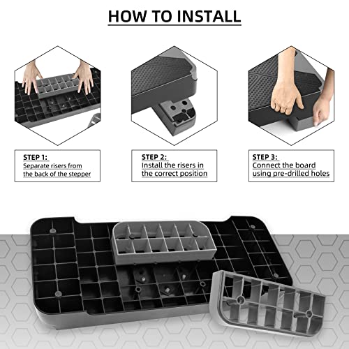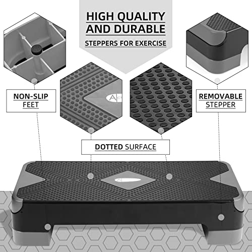 - 【تصميم مضاد للانزلاق】سطح مزخرف غير قابل للانزلاق وممتص للصدمات، ما يعني أنه يمكنك الحصول على الثبات مع كل مجموعة من الخطوات. كما يأتي مع أقدام غير قابلة للانزلاق من المطاط على كل رافعة لمنعها من الانزلاق أثناء التمرين والخدش يتضمن أربعة أقدام مطاطية إضافية.