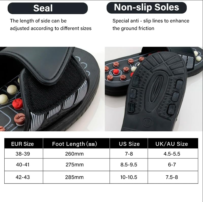 - التحفيز: يتميز بمبدأ التحفيز وفقًا لنقاط الوخز بالإبر في جسم الإنسان، قم بتدليك النقاط العلاجية لباطن القدمين. شبشب تدليك القدم، يمكن أن يساعد في تخفيف آلام الظهر، وهو رائع للعائلة والأصدقاء.