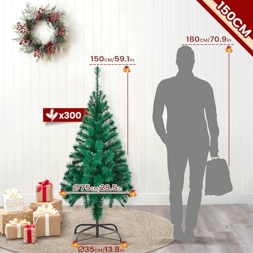 ACXIN - شجرة كريسماس صناعية بطول 150 سم مع 300 مسمار، شجرة التنوب الصناعية، تجميع سريع، بما في ذلك حامل معدني من اكسين، أخضر، 1.5 متر