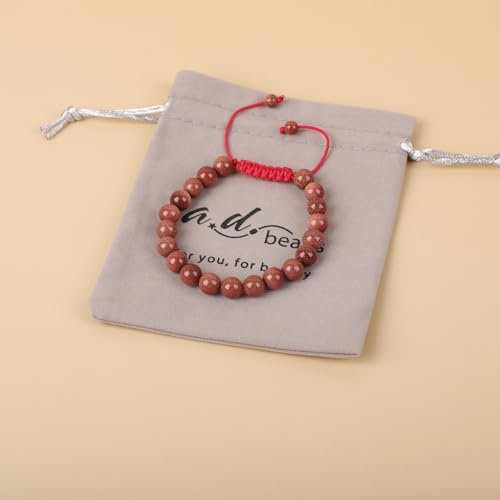 AD Beads - سوار مكرامية من احجار كريمة طبيعية 8 ملم للشفاء والمساعدة علي التخلص من الالم والخوف واستعادة الطاقة قابل للتعديل ومناسب للجنسين مقاس 7-9 بوصة من ايه دي بيدز
