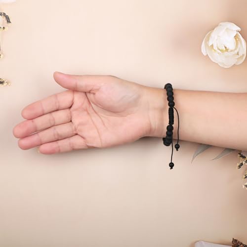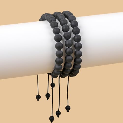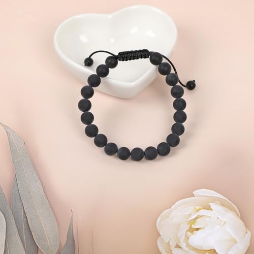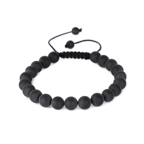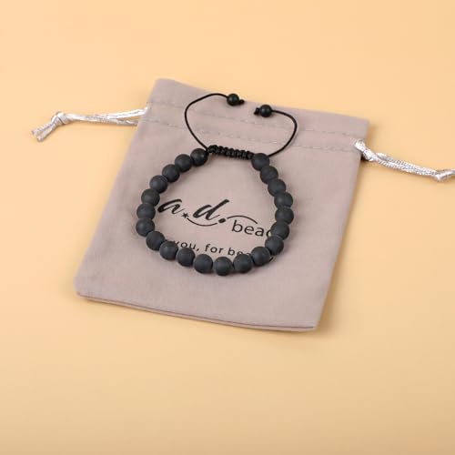 AD Beads - اساور احجار كريمة طبيعية 10 ملم من ايه دي بيدز، قدرة على الشفاء، مكرمية البلورة، 7-9 بوصة (عقيق يماني اسود مطفي)، للنساء