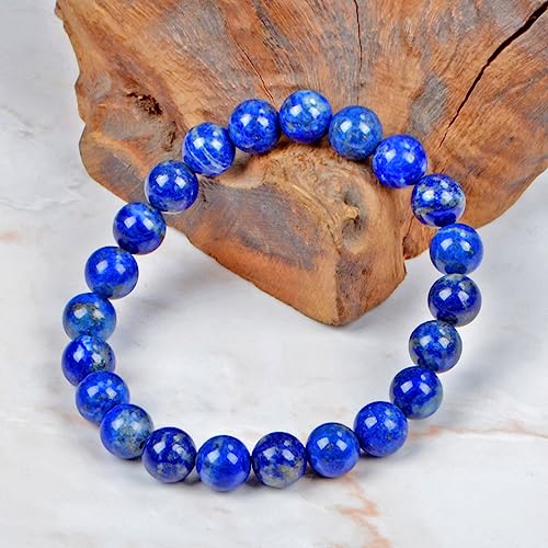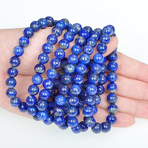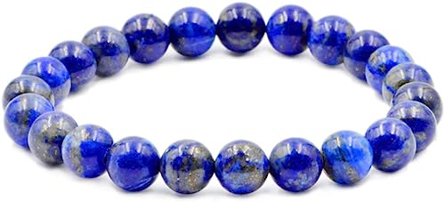 AD Beads - سوار مرن من الاحجار الكريمة الطبيعية بطريقة ريكي للشفاء من اد بيدز، مقاس 8 ملم, مخمل, لابيس حجر كريم