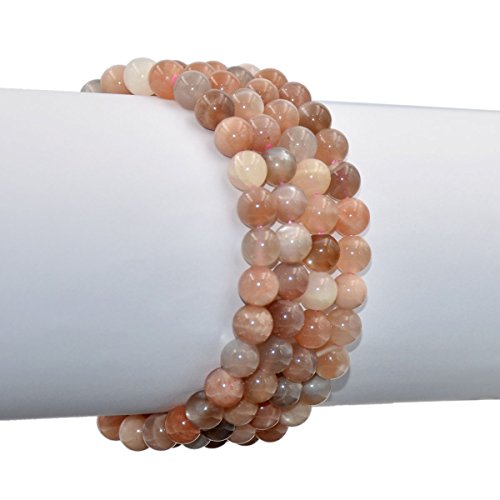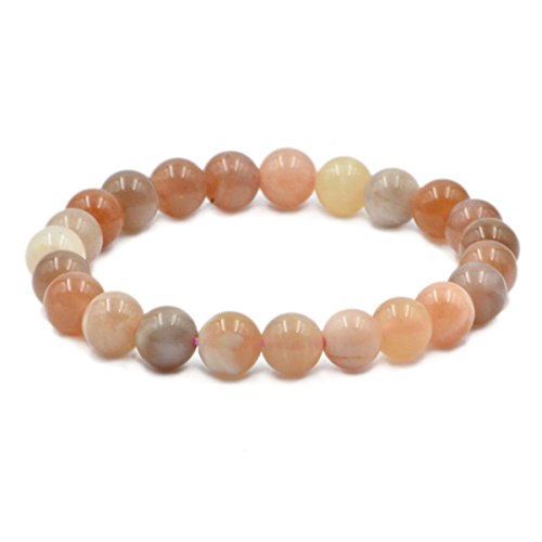AD Beads - سوار مرن من الاحجار الكريمة الطبيعية بطريقة ريكي للشفاء من اد بيدز، مقاس 8 ملم, مخمل, حجر شمسي متعدد الألوان