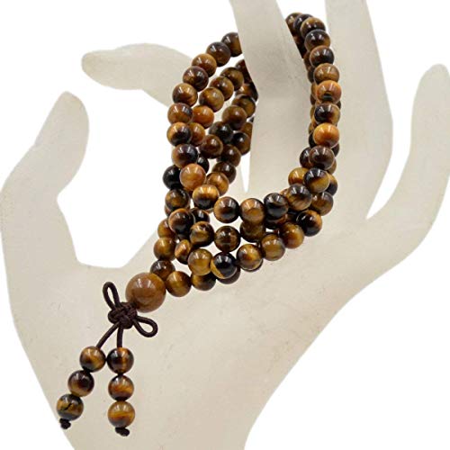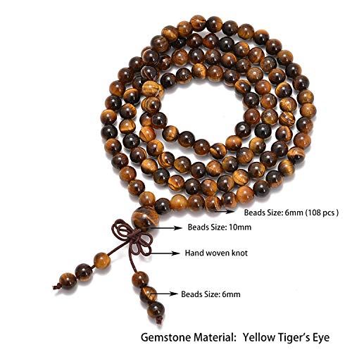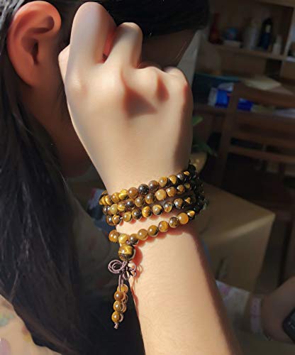 AD Beads - خرز AD الخرز الأحجار الكريمة الطبيعية البوذية 108 مسبحة شفاء مالا سوار قابل للتمدد 6 مللي متر عين النمر الصفراء للكبار من الجنسين
