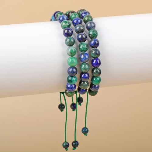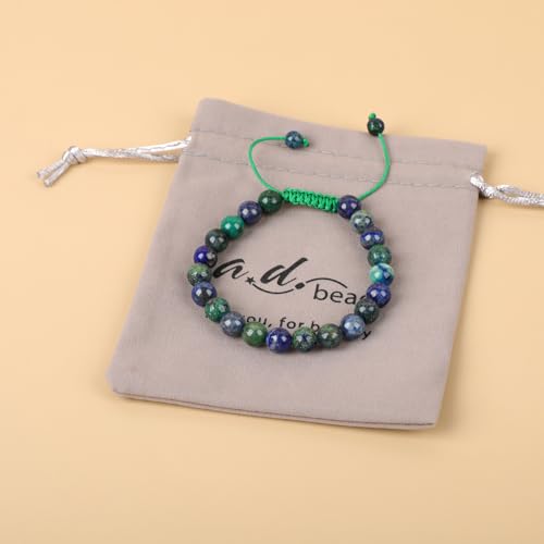 AD Beads - اساور احجار كريمة طبيعية 10 ملم من ايه دي بيدز قدرة على الشفاء مكرمية البلورة 7 - 9 بوصة لازورد كريزوكولا للبالغين الجنسين