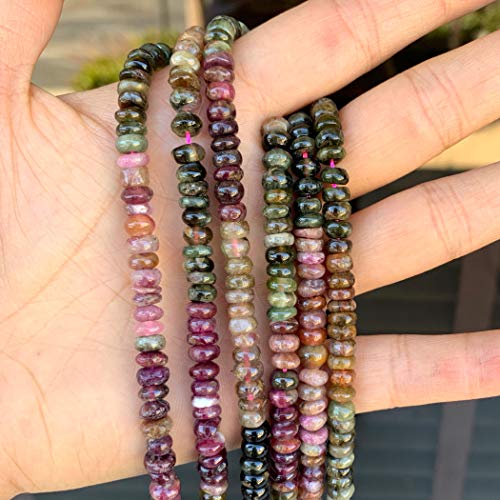 Adabele - جدائل أحجار التورمالين الكريمة الطبيعية متعددة الألوان 5 ملم، خرز أحجار كريمة رونديل سائبة من ادابيلي، (إجمالي 366-390 قطعة)، 3 قطع، GY1R-5