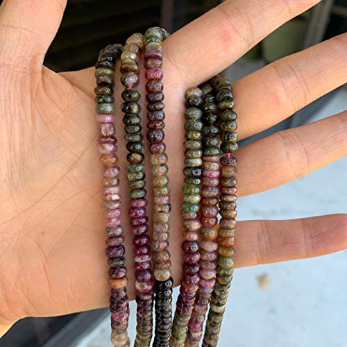 - (3 خيوط، حوالي 366-390 خرزة بالمجموع، طول كل خيط حوالي 38 سم، حوالي 122-130 خرزة لكل خيط)، الحجر/المادة: تورمالين طبيعي متعدد الألوان، حجر طبيعي، غير مصبوغ، بدون تحسين لون.