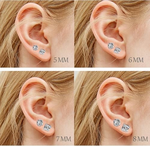 ADAIER - زوجان من الاقراط المغناطيسية المصنوعة من الستانلس ستيل للرجال والنساء لا تسبب الحساسية من الزركونيا المكعبة 8 ملم (SE-21)
