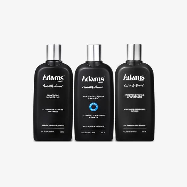 adams for men - شامبو وبلسم وجل استحمام منعش لتقوية الشعر من ادامز، 250 ملليلتر، طقم من 3 قطع
