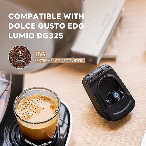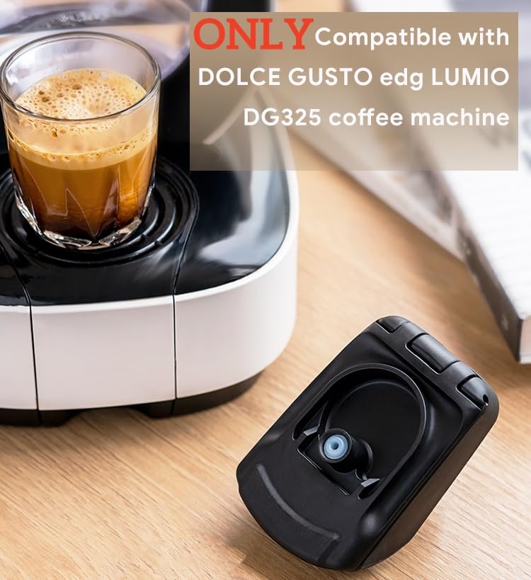 - ضع مسحوق القهوة المفضل لديك / كبسولات بينفوشين القابلة لإعادة الاستخدام في أداتنا القابلة لإعادة الاستخدام لموديلات دولتشي غوستو لوميو DG325، اختبار جديد ولكن استمتع بالفرق