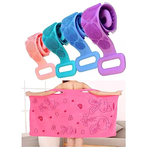 adbeni - روب استحمام قطني ناعم من المايكروفايبر بكثافة 400 جرام لكل متر مربع وليفة ظهر سيليكون للجسم للتنظيف العميق للبشرة والتدليك، حزام لتقشير وإزالة الجلد الميت للاستحمام من ادبيني، عبوة من قطعتين