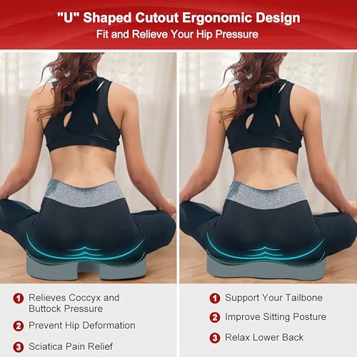 - [دعم مريح] وسادة العصعص المصنوعة من فوم ميموري عالي الكثافة تزيل الضغط على عظم الذنب أثناء الجلوس وتعزز وضعية صحية ومحاذاة العمود الفقري مع منع قرحة الضغط. تصميم على شكل حرف U مصمم خصيصًا لتعليق عظمة الذنب بلطف مع تصميم محدد لتعزيز التوزيع المتساوي لوزن الجسم والقضاء على الآلام في عظمة الذنب، والوركين، والعمود الفقري، والأرداف. يعزز الدورة الدموية الجيدة في الساقين، ويخفف آلام الظهر، وآلام القطنية، وآلام الرقبة، والتهاب المفاصل في الوركين.