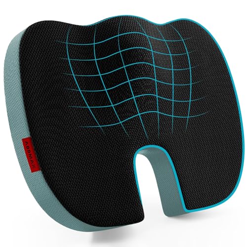 ADDMAX - وسادة مقعد لتقويم العظام وعظمة العصعص (فوم ميموري عالي الكثافة) لتخفيف آلام الفخذ، وعظمة الذنب، وعرق النسا - وسادة عصعص بتصميم مريح ومحدد لكراسي المكتب، والمنزل، والسيارة وغيرها من ادامكس