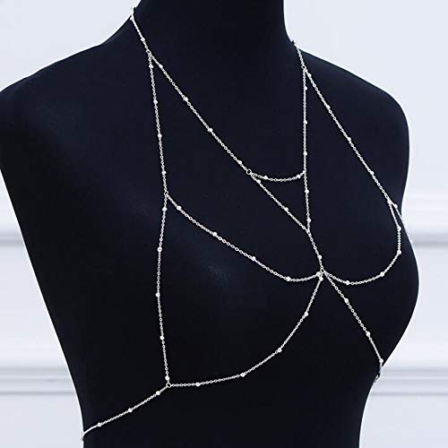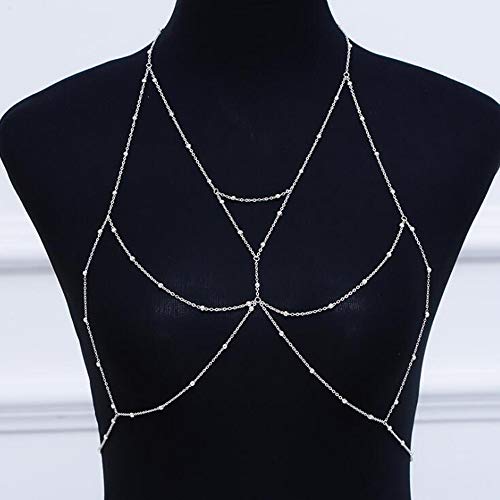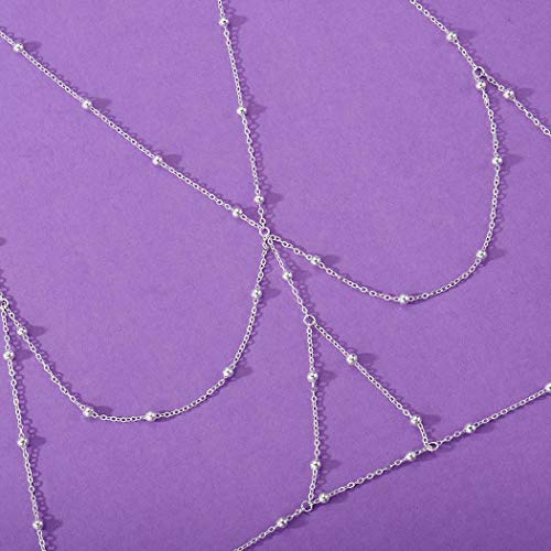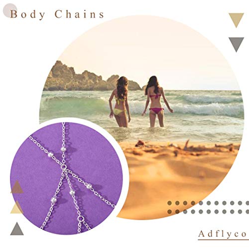 Adflyco - ادفلاكو سلسلة بيكيني مثيرة للشاطئ على الصدر من الخرز الفضي، مجوهرات الجسم العصرية للنساء والفتيات المراهقات (مجموعة 5)