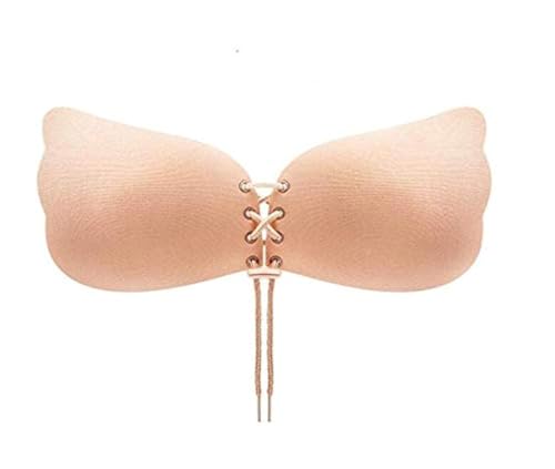 Al Arab for Import & Distribution - Ismail EL Fiky - حمالة صدر بوش اب لاصقة للنساء بدون حمالات وبدون ظهر مصنوعة من السيليكون متوفرة باللون البيج نود وقابلة للاستخدام مع رباط أحمر خالٍ الأسلاك