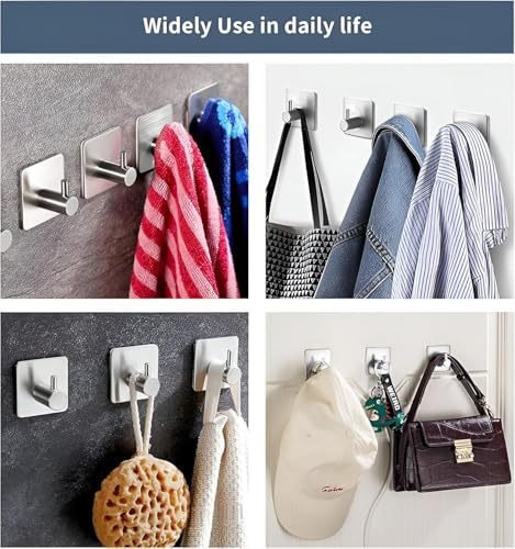- توفر هذه الخطافات اللاصقة شديدة التحمل سعة تحميل عالية تصل إلى 6.8 كيلوجرام لكل خطاف، مما يجعلها مثالية لتعليق الأشياء الثقيلة مثل المعاطف والفوط وأطواق الكلاب دون القلق من انفصالها.