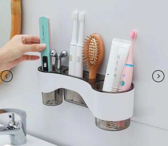 - حامل مجفف شعر لاصق يثبت على الحائط مع منظم أدوات تصفيف الشعر ومنظم للحمام وغرفة الغسيل