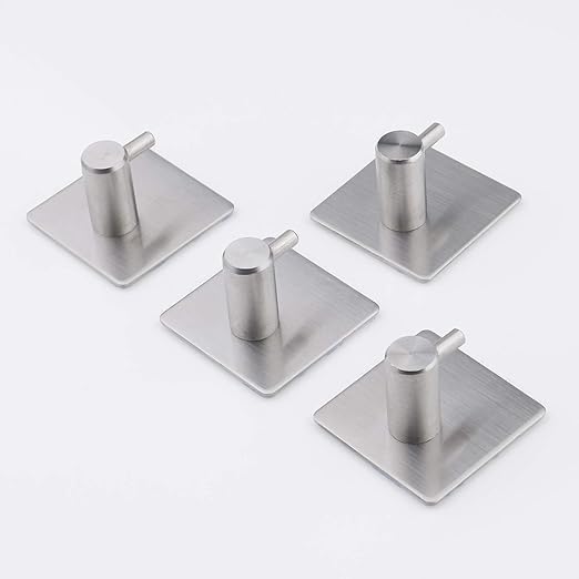 Generic - طقم خطاف لاصق للحائط من فولاذ مقاوم للصدأ ذاتي اللصق 3M، خطافات لاصقة للفوط والملابس والمفاتيح والحمام والمطبخ، 4 قطع (4، A01)