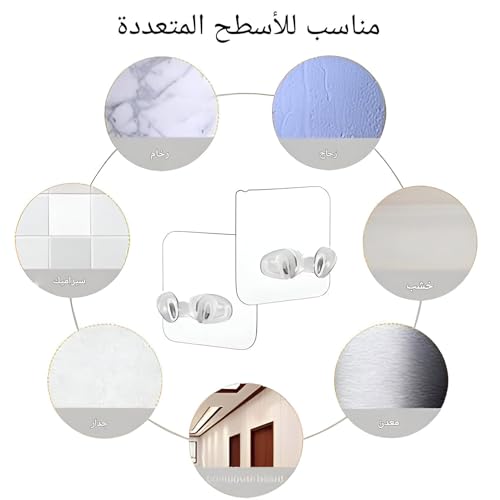 - مواد عالية الجودة: هذه الخطافات السحرية مصنوعة من مواد عالية الجودة ومعروفة بخصائصها عديمة الرائحة وغير السامة والصديقة للبيئة. تعزز اللمسة النهائية الشفافة واللامعة جمال الجدران وتجعل مساحتك تبدو أنيقة.