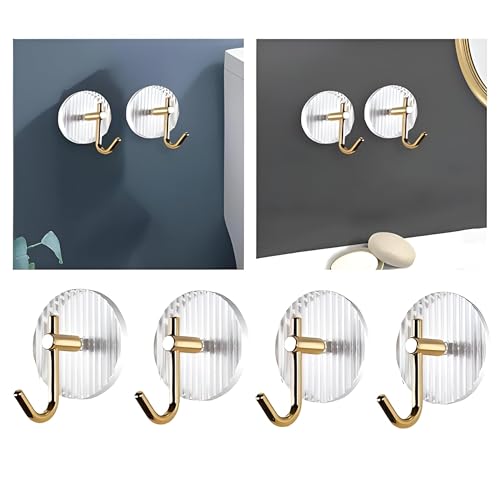 Generic - خطافات لاصقة - مجموعة من 4 قطع مع خطافات لاصقة على الوجهين باللونين الذهبي والفضي، تركيب بدون براغي، مثالية للمطبخ والحمام والخزانات والمساحات الرطبة، قاعدة اكريليك قوية توفر تثبيتًا ثابتًا
