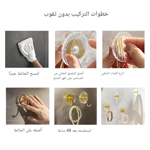 - سهل التركيب - نظف الجدار الجاف، واضغط على الخطاف بإحكام، وسيحمل الأشياء بأمان دون أي أدوات.