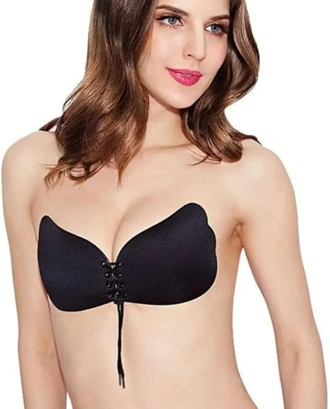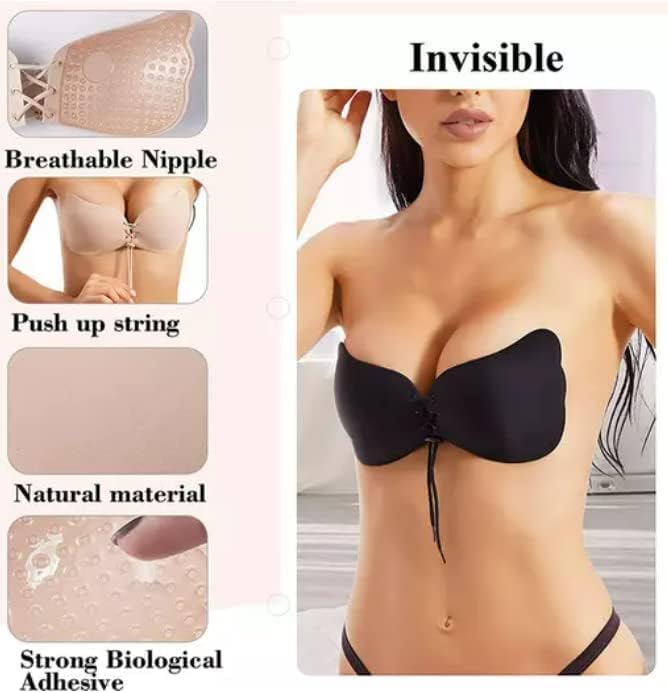 Generic - حمالة صدر لاصقة غير مرئية رفع بدون ظهر حمالات للنساء لون اسود مقاس واحد خالٍ من الأسلاك