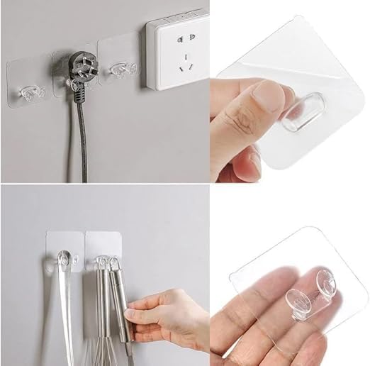 - خطاف حائط شفاف ذاتي اللصق بتصميم خطاف مزدوج، موفر للمساحة..