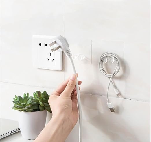 Generic - حامل قابس الطاقة اللاصق ، حامل خطاف تعليق يثبت على الحائط، حامل مقبس ، شماعات حائط للمنزل والمكتب والحمام ( 5قطع شفاف )، بلاستيك بي في سي