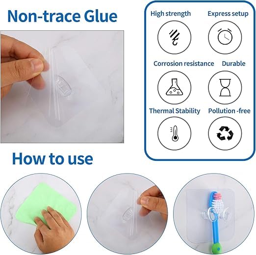 - يستخدم على نطاق واسع على مجموعة متنوعة من الأسطح الملساء بما في ذلك الخشب والبلاط والسيراميك والمعدن والأسطح البلاستيكية وأكثر من ذلك. مثالية لتعليق ملحقات الدش أو أدوات المطبخ أو مقابس الطاقة..