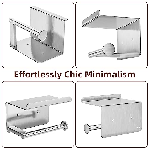 susswiff - حامل ورق تواليت لاصق مع رف للجوال، حامل بكرة ورق تواليت مثبت على الحائط، حامل بكرة مناديل الحمام مقاوم للصدا مع رف، حامل بكرة ورق التواليت اللاصق - فضي