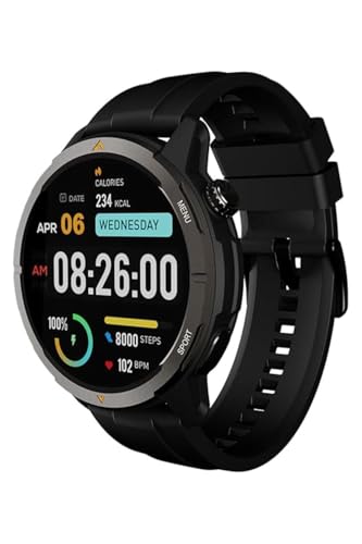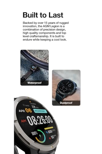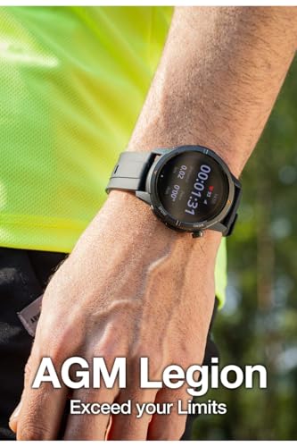 ADHOMAX - ساعة ذكية ادوماكس من ايه جي ام بتصميم عسكري متين للأماكن الخارجية وتحديد المواقع وشاشة أموليد بتصنيف IP68 والمكالمات وتتبع اللياقة البدنية والبوصلة والطقس والموسيقى، متوافقة مع IOS وأندرويد (أسود)