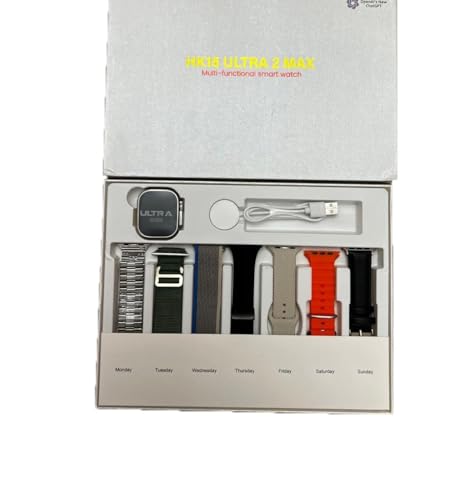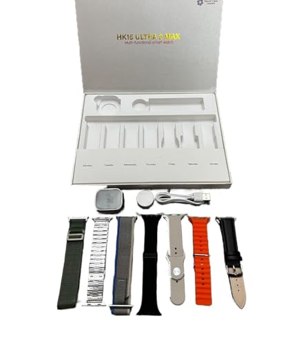 ADHOMAX - ساعة ذكية HK15 الترا 2 ماكس بشاشة اموليد 2 بوصة للرجال والنساء من ادهوماكس متوافقة مع IOS بنظام اندرويد وشات جي بي تي بالذكاء الاصطناعي، IP68 متعقب اللياقة البدنية | 7 أساور قد تختلف الطباعة، برتقالي