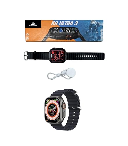 ADHOMAX - ساعة ذكية K8 الترا 3 من ادهوماكس، حافظة رفيعة، مكالمات، 3D، تتبع اللياقة البدنية، ذكاء اصطناعي، صوت، شحن لاسلكي، معدل ضربات القلب، الالعاب، تشبع الاكسجين، الطقس، كاميرا، موسيقى، IOS، اندرويد، للرجال