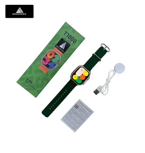 ADHOMAX - ساعةذكية 2025 T1000الترا2بتصميم أنيق2.08بوصة،الاتصال قريب المدى شاشةبدون حواف متتبع اللياقةالبدنيةمعدل نبضات القلب دعم المكالمات والشحن اللاسلكي لأجهزةiOS وأندرويد للرجال والنساءمن ادهوماكس،أخضر زيتي